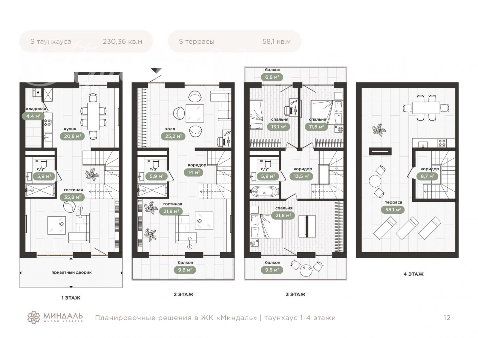 Концепция жилого квартала «Миндаль» основана на сочетании приватности, экологичной среды и современных стандартов комфорта. Закрытая охраняемая территория формирует безопасное пространство для жизни, где отсутствует автомобильное движение внутри двора.